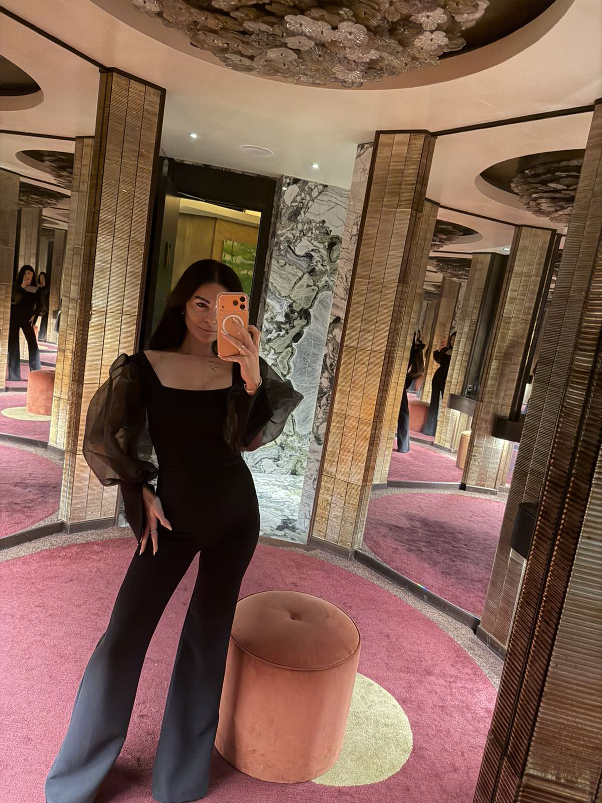 Ολόσωμη φόρμα κρεπ ανορθωτική φόρμα με οργάτζα μανίκι.